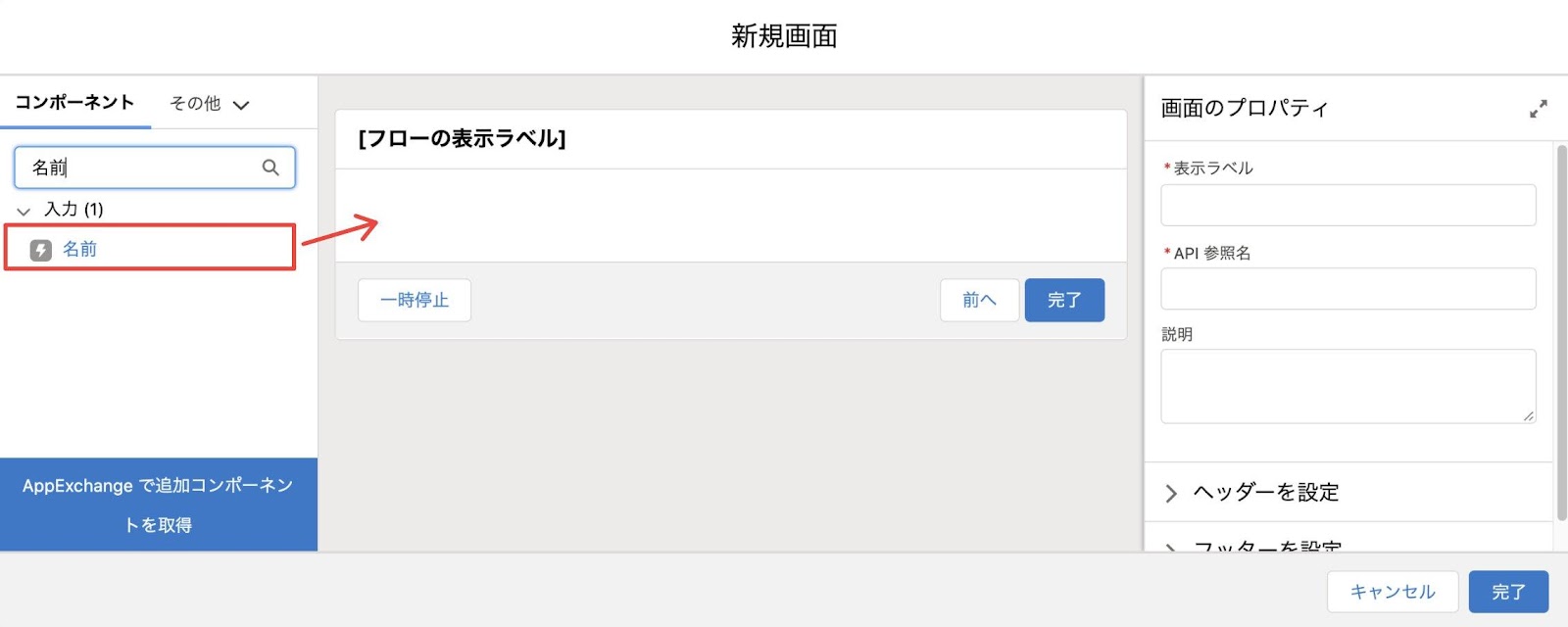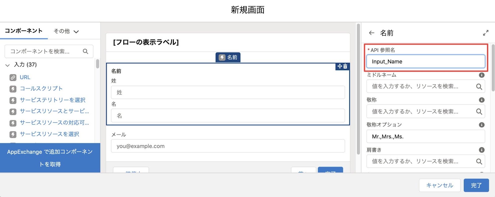 「名前」を選択し、API参照名に「Input_Name」を選択します