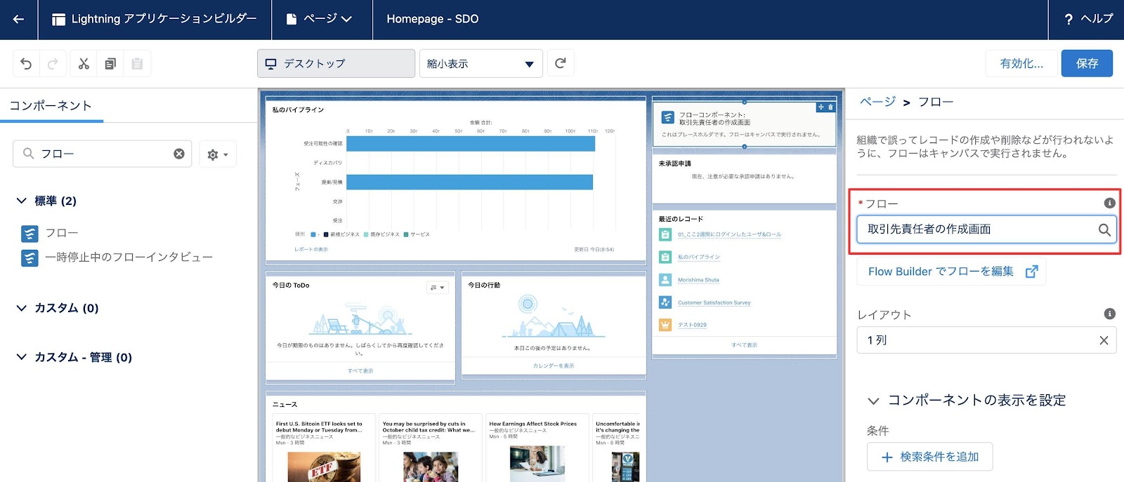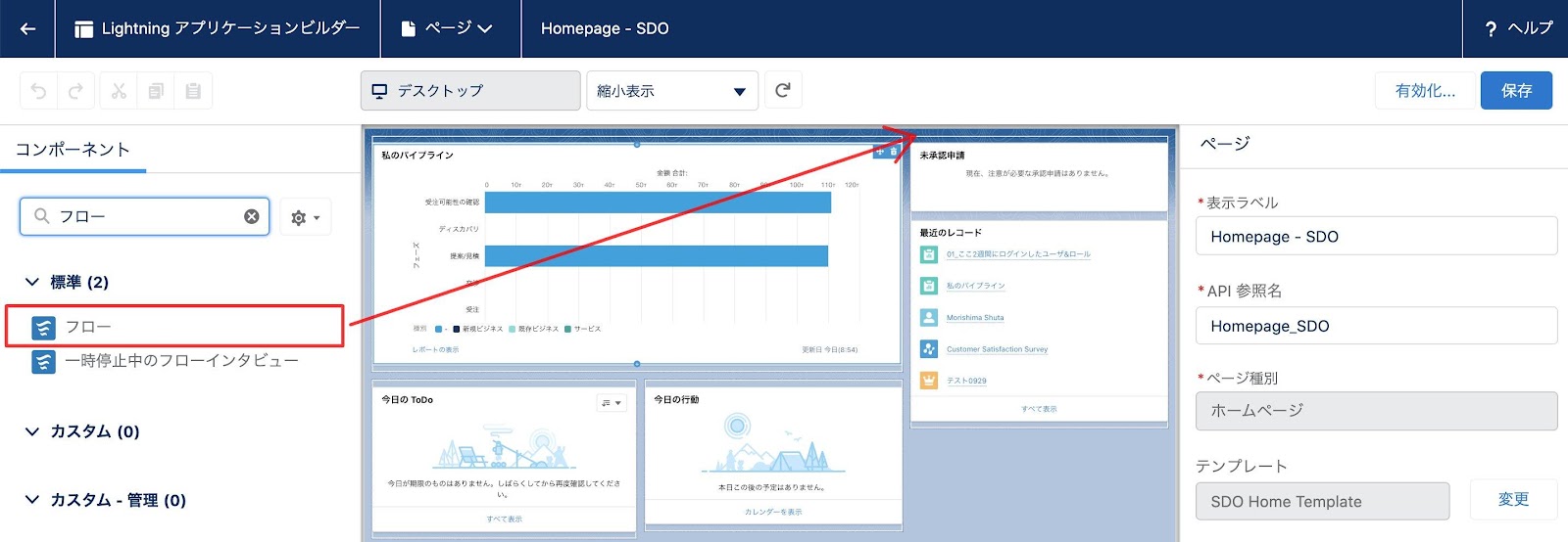 作成したフローは、Lightning ページにフローを配置する、またはクイックアクションを新規作成することで使用できます
