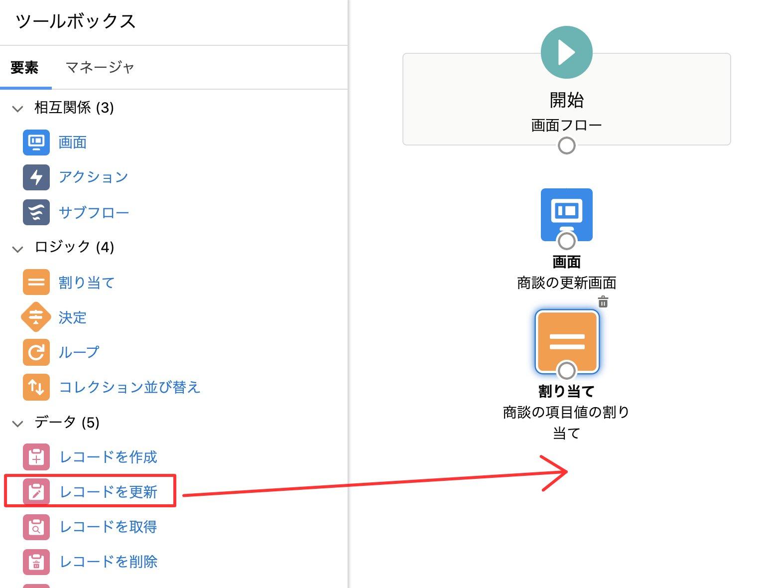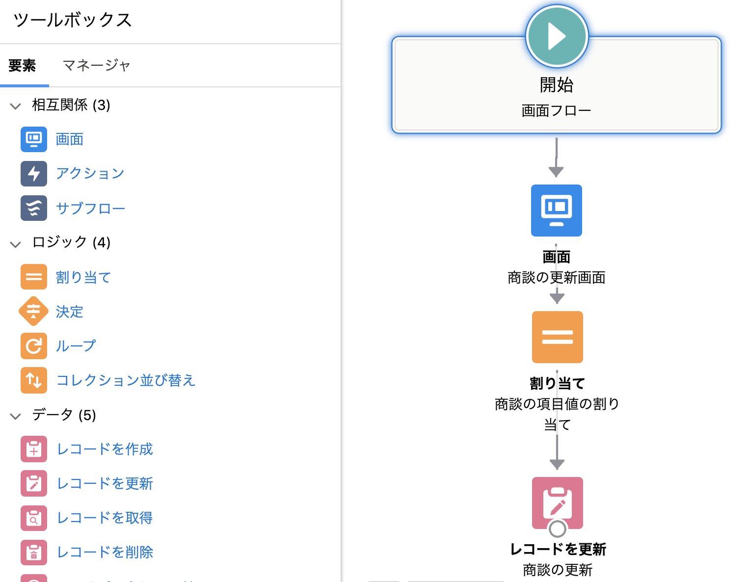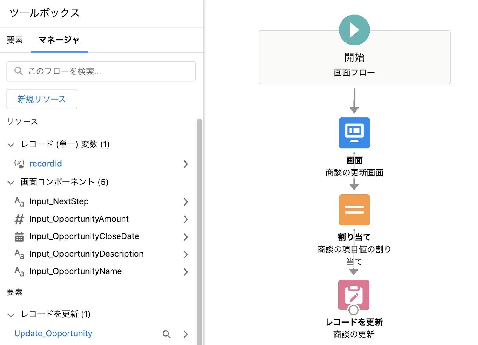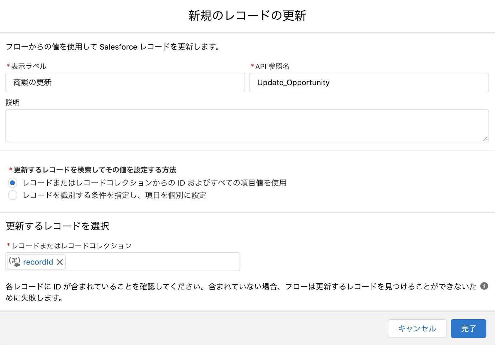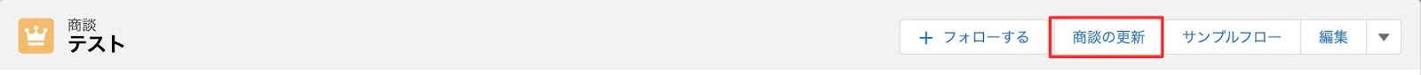 アクションがクリックされた際に商談の更新画面を表示し、入力された値で商談を更新します。