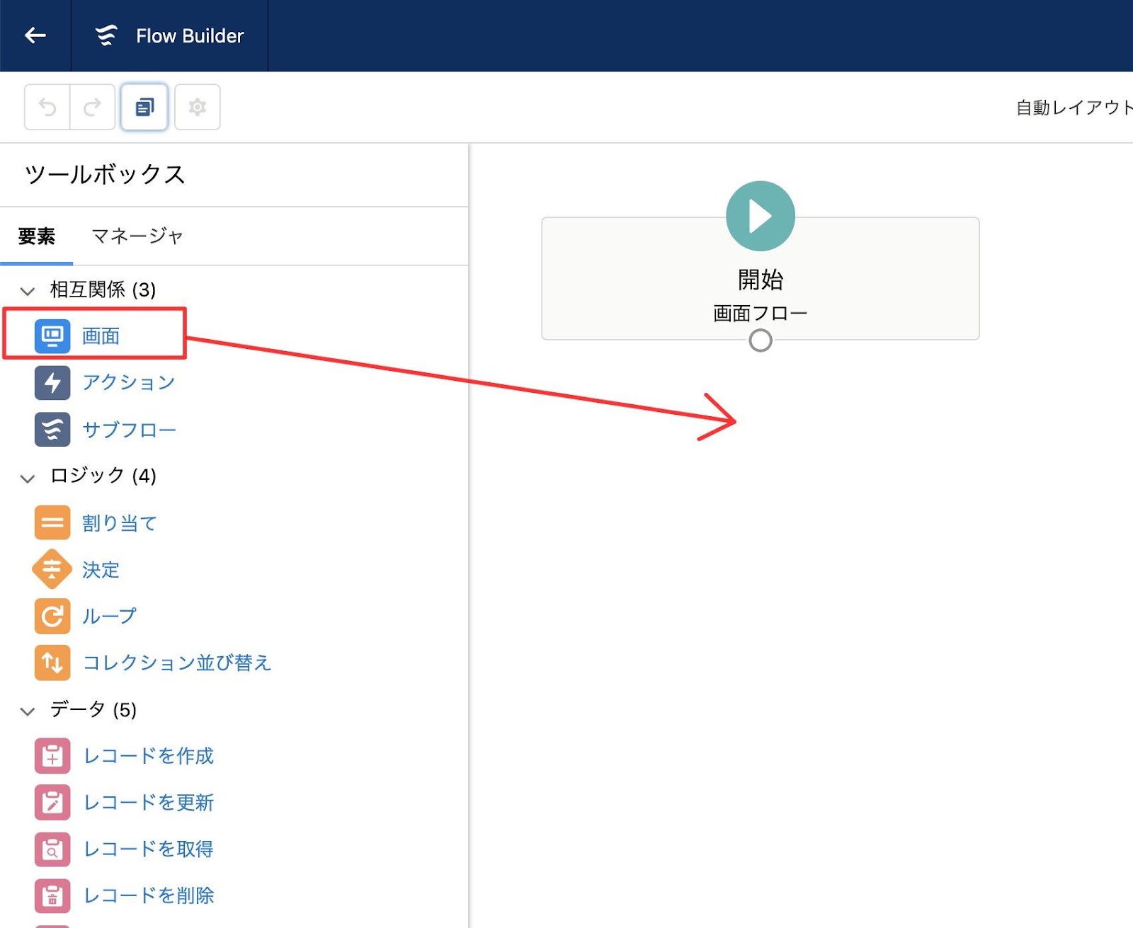 画面右上の「保存」をクリックし、フローの表示ラベル、フローのAPI参照名に任意の値を入力し保存します