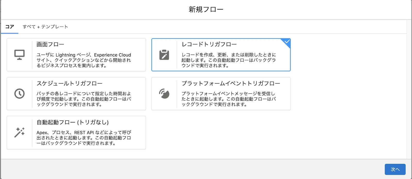 レコードトリガフローを選択します