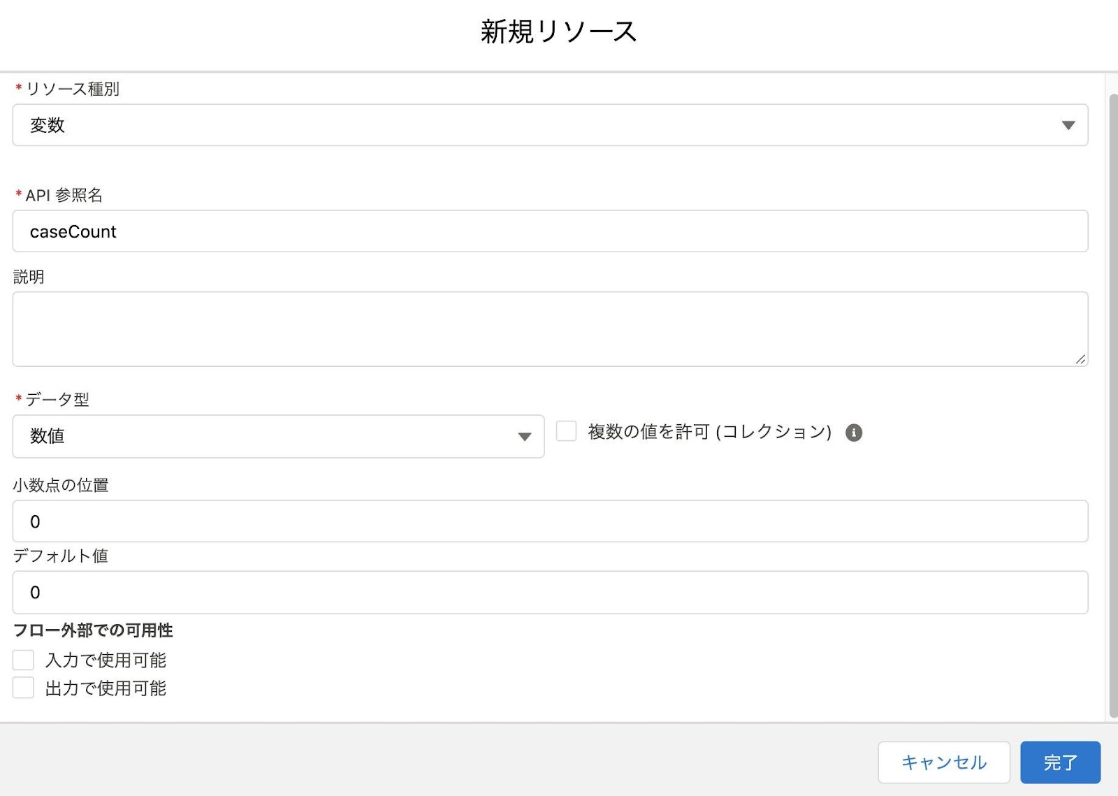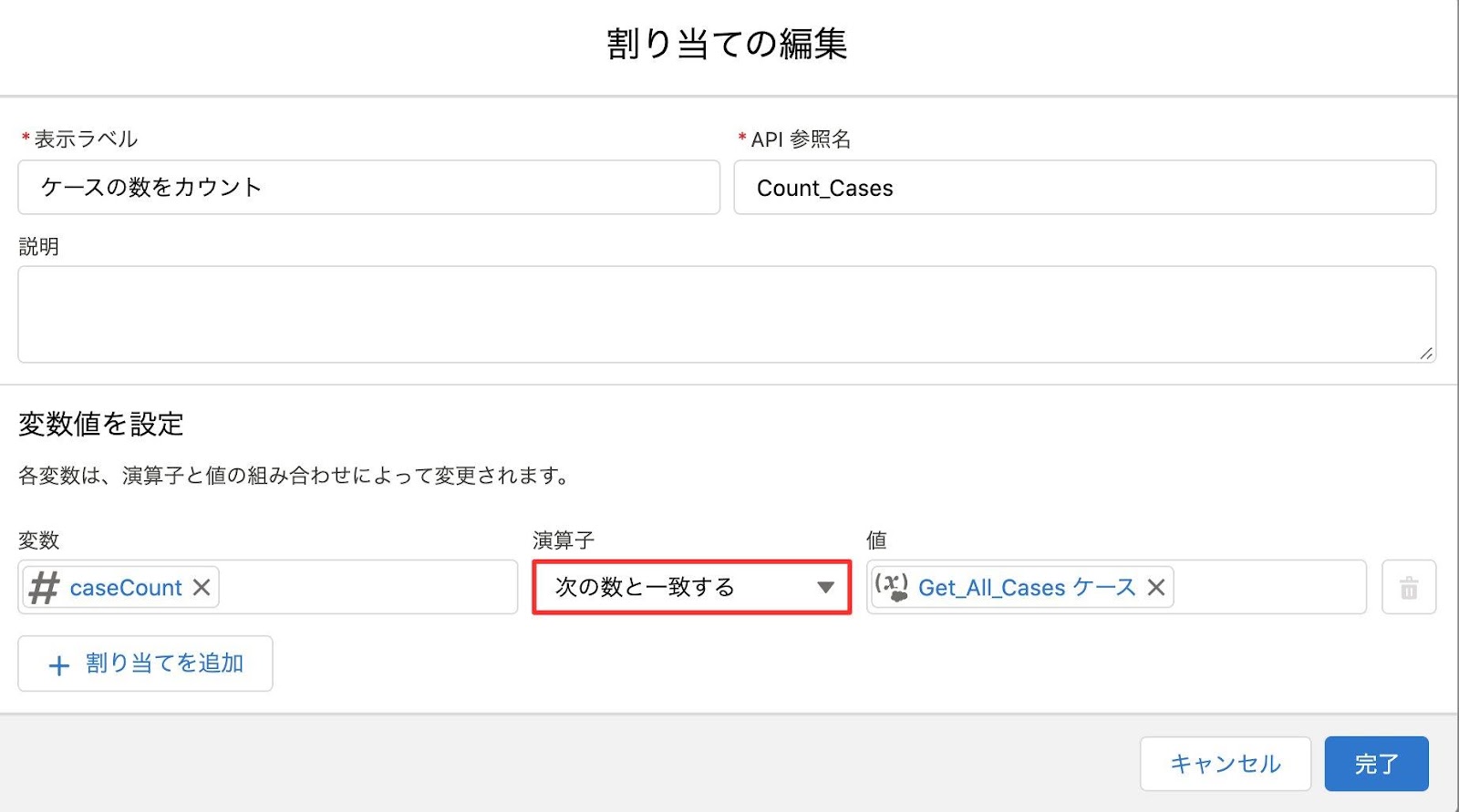 下図のように設定を行い、変数「caseCount」にケースの集計値を格納します