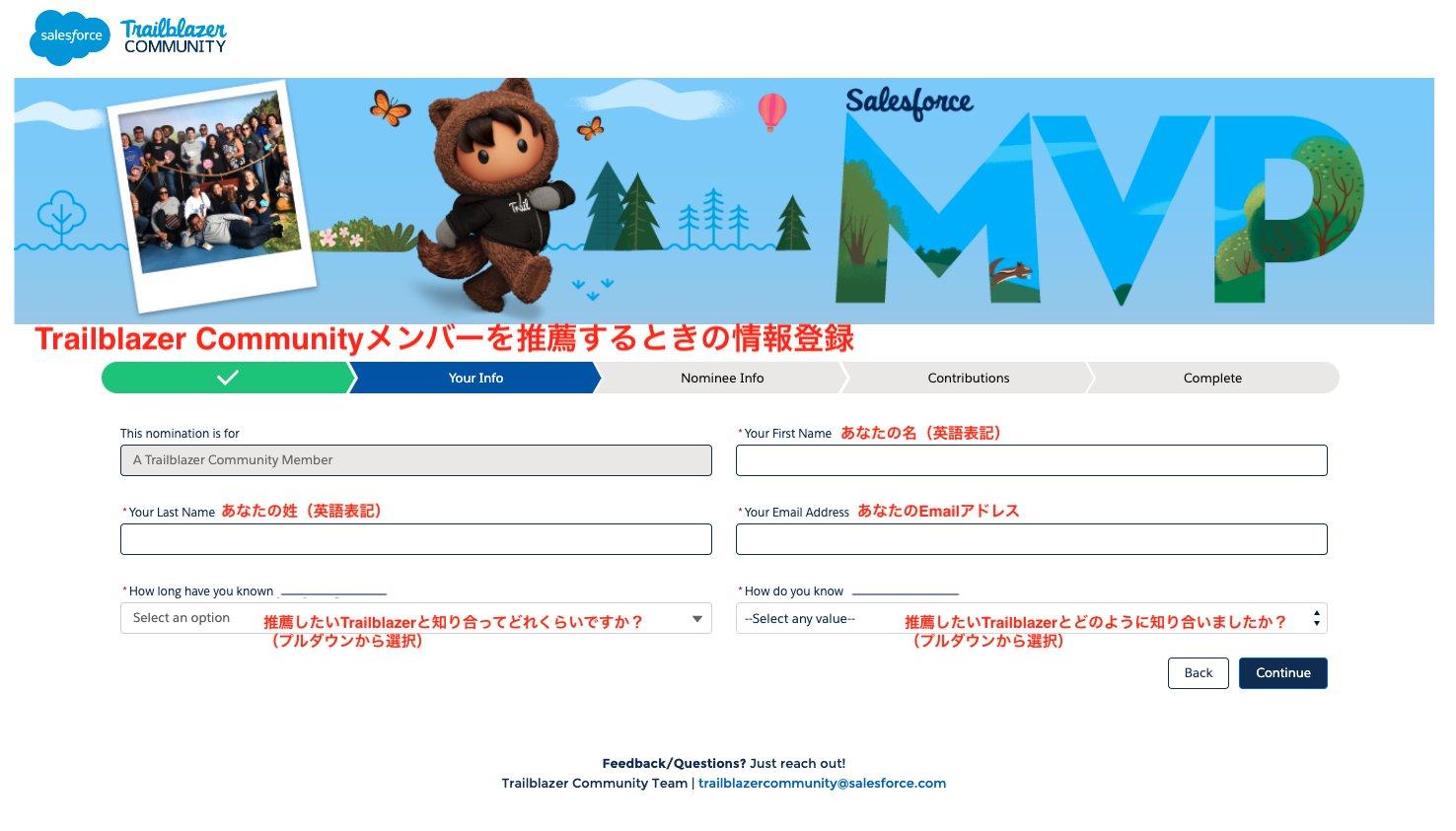 パターン①Trailblazer Community メンバーを推薦するときの情報登録