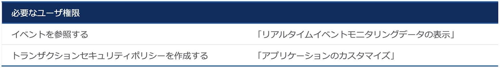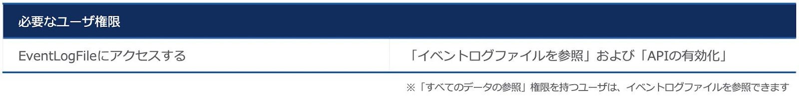 - リアルタイムイベントモニタリングを有効にするのに加えて、リアルタイムイベントオブジェクトに対するユーザ権限を設定します。リアルタイムイベントモニタリングオブジェクトには機密データが含まれる場合があります。