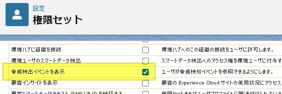 - 権限セットの [システム権限] ページを編集し、[脅威検知イベントを表示] 権限を有効にします