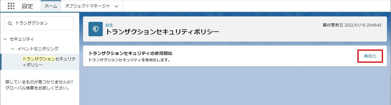 - (初回のみ) トランザクションセキュリティ画面の [有効化] ボタンをクリックします。