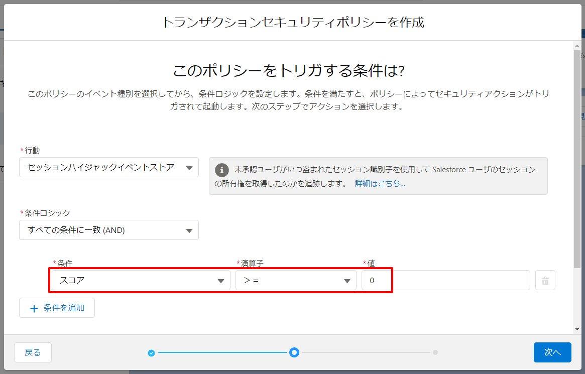 - GUI操作でポリシーを作成していく場合は [条件ビルダー] を、予めトランザクションセキュリティ用に作成したApexクラスを指定する場合は [Apex] を選択します。