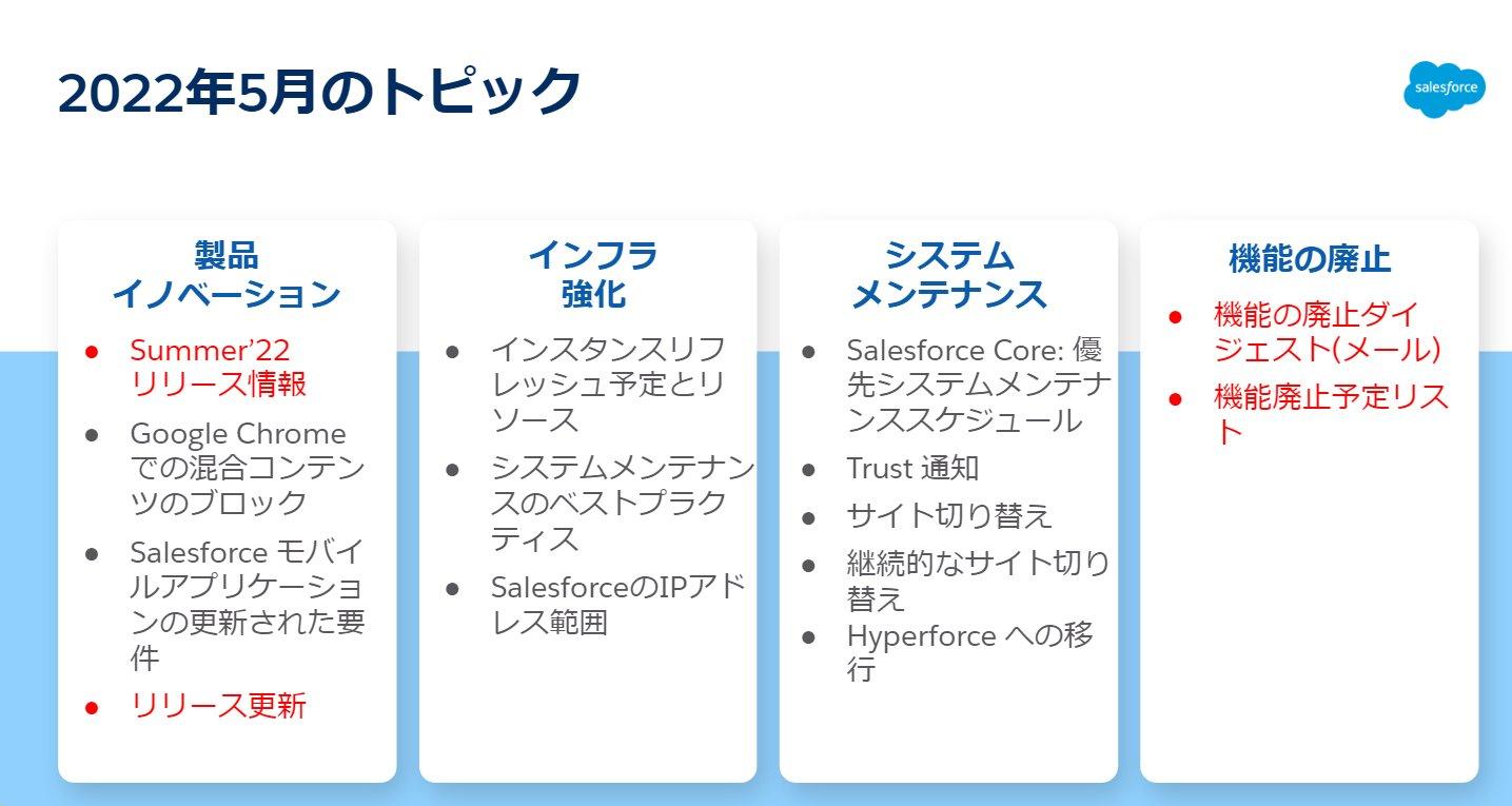 当記事は「Salesforceの運用に関するお知らせ」の5月号となります。