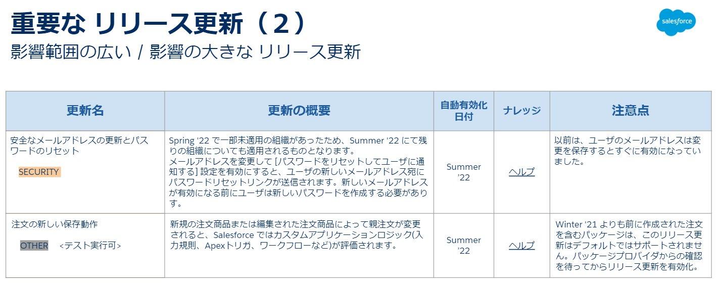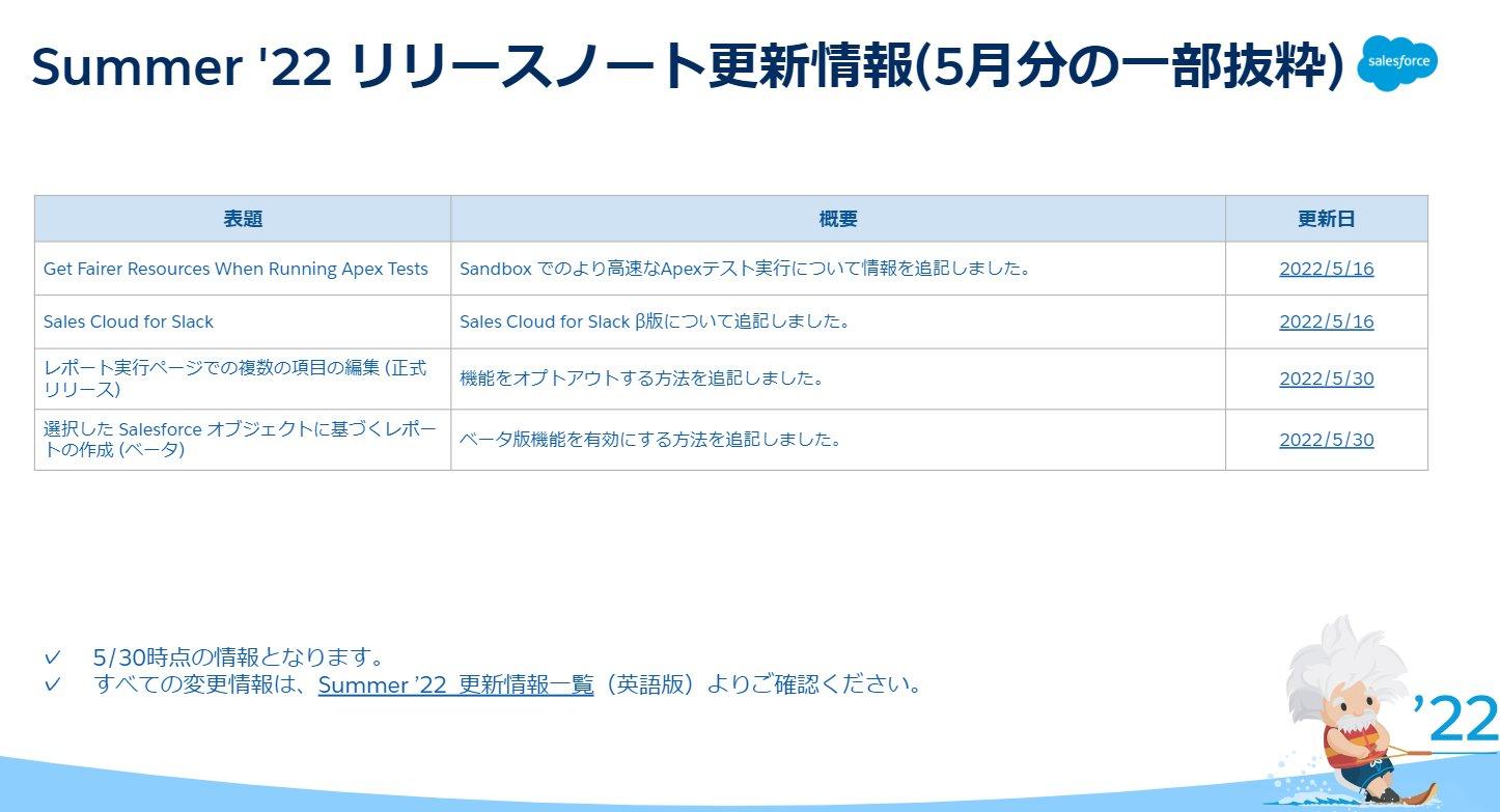 Summer '22のバージョンアップに向けた情報です。