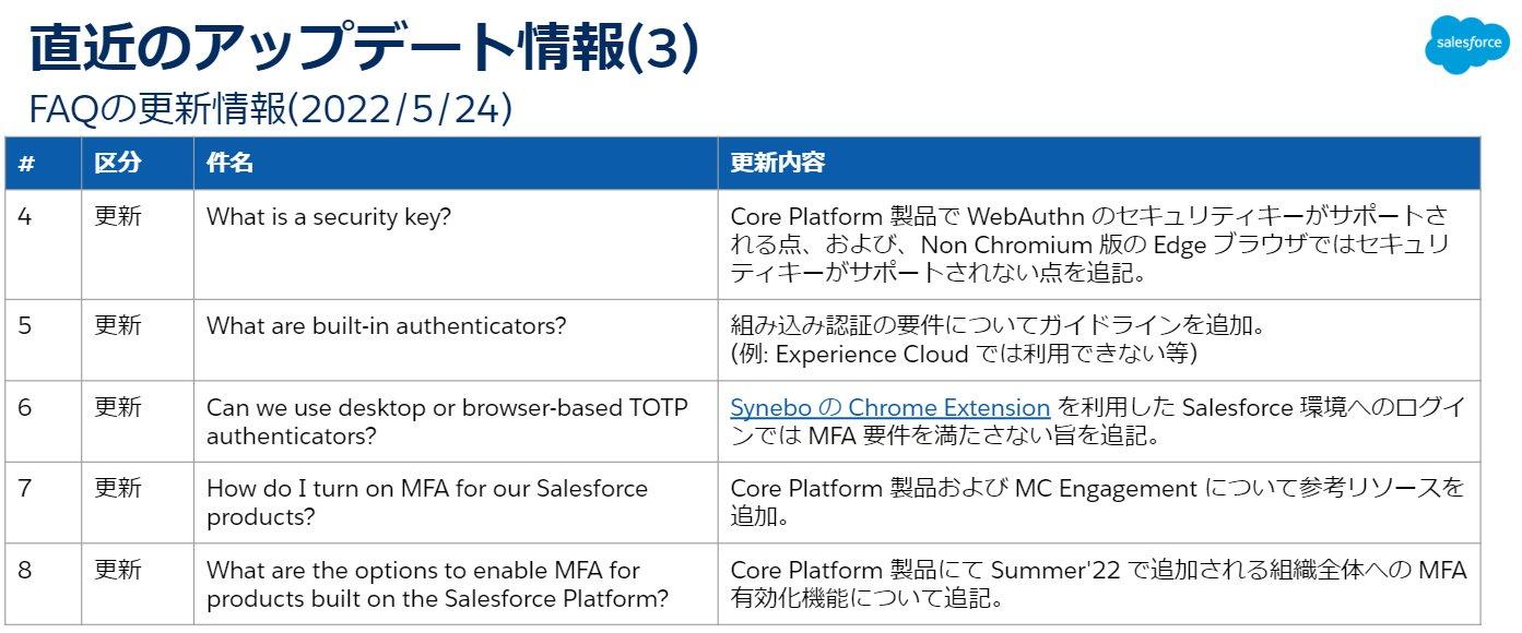 MFAのFAQに関する更新を以下に記載します。