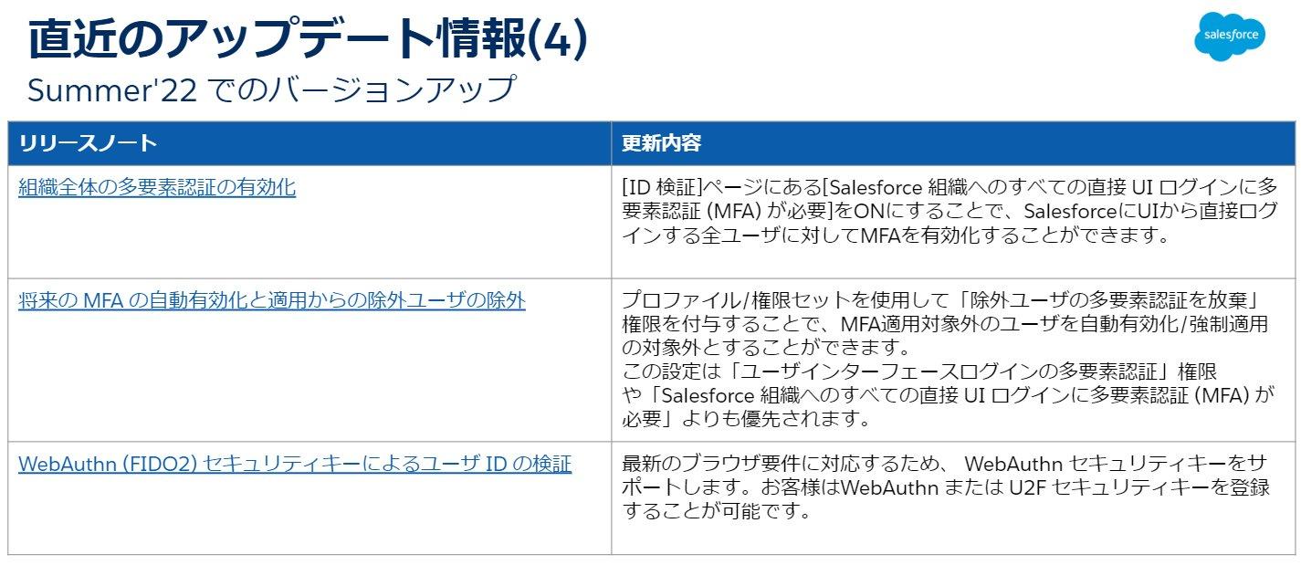 次回バージョンであるSummer’22におけるMFA関連のバージョンアップ情報は上記の3点となります。