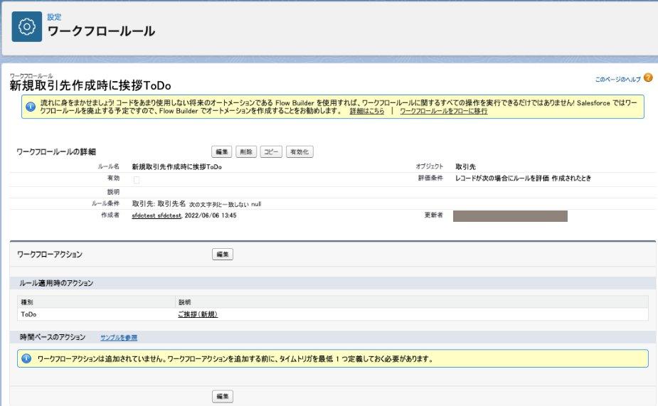 ワークフローの書き換えの場合、ワークフローを忘れずに「無効」にしてください。