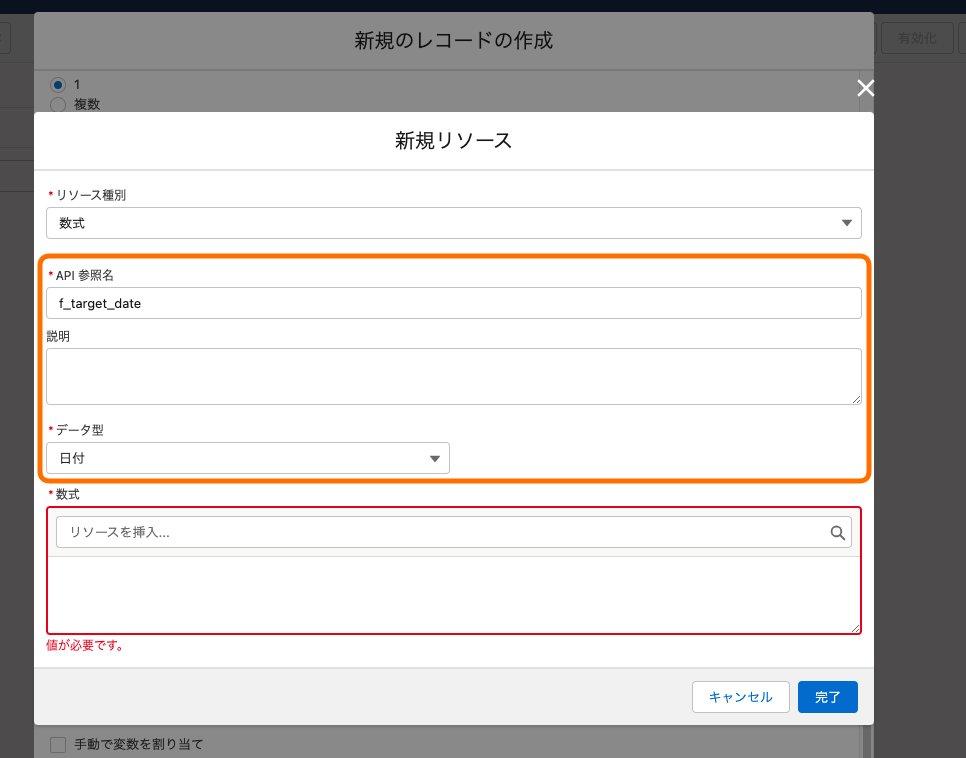 「完了」を押すと、新規リソースの数式のAPI参照名がセットされます。