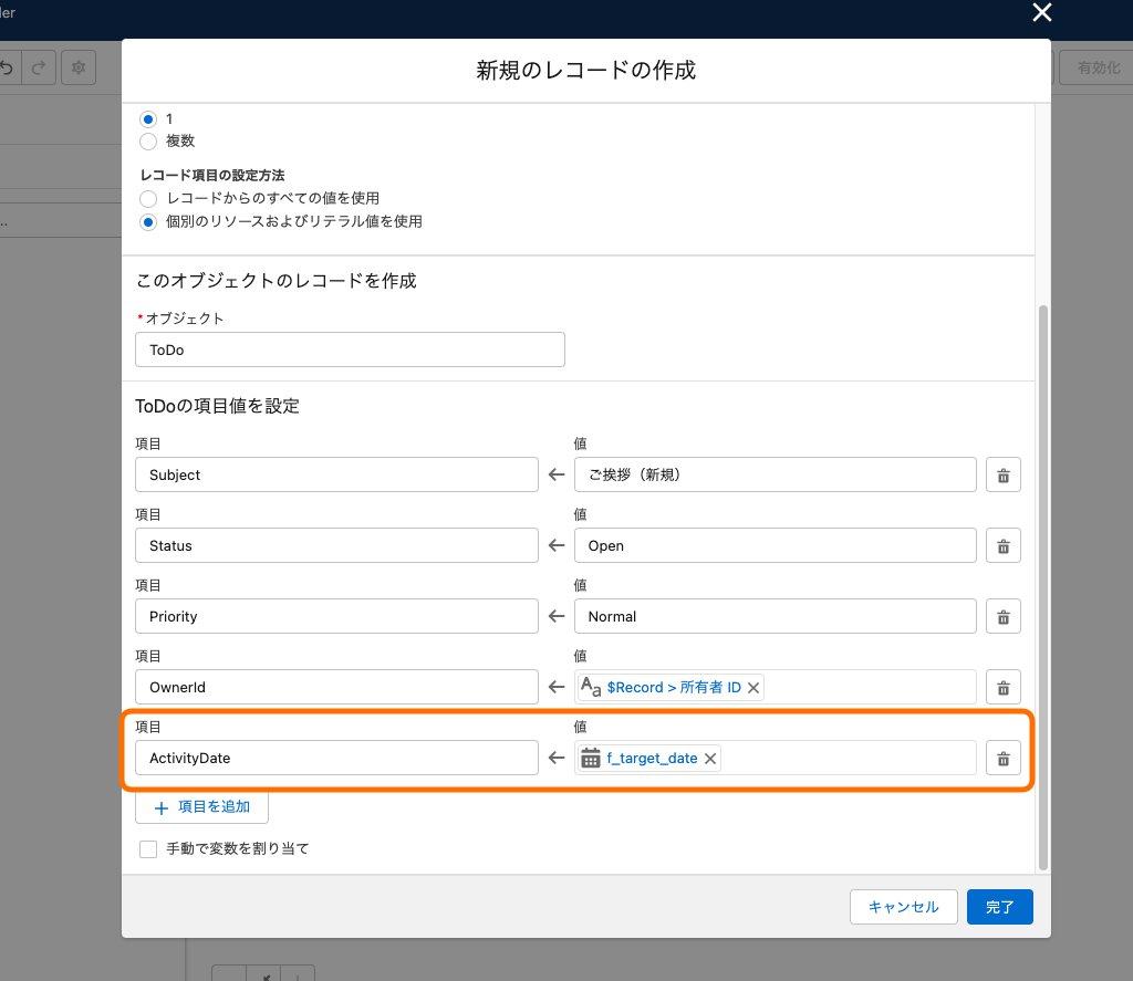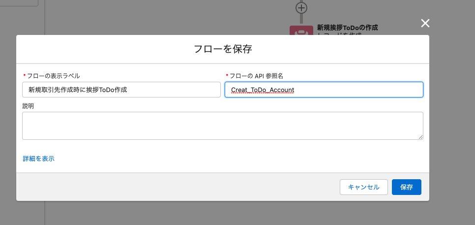 新規取引先を作成した時に、新規取引先への訪問挨拶のToDoを自動作成する。