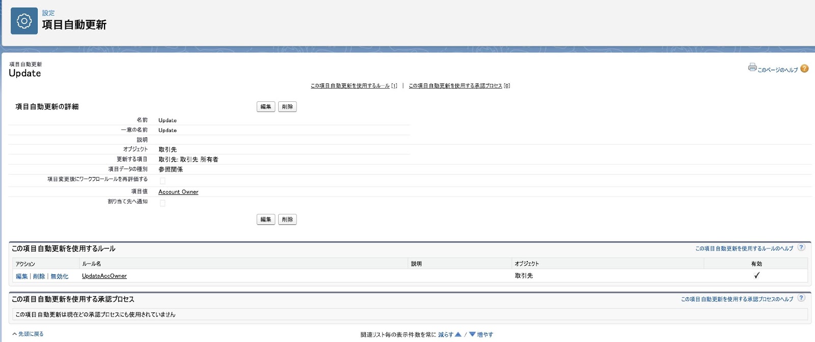取引先を作成・更新した時に、取引先の所有者を“Account Owner”というユーザに更新します。