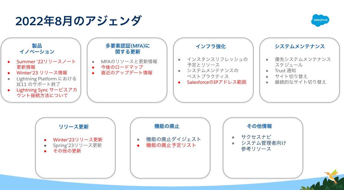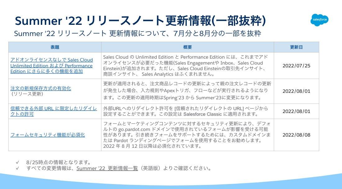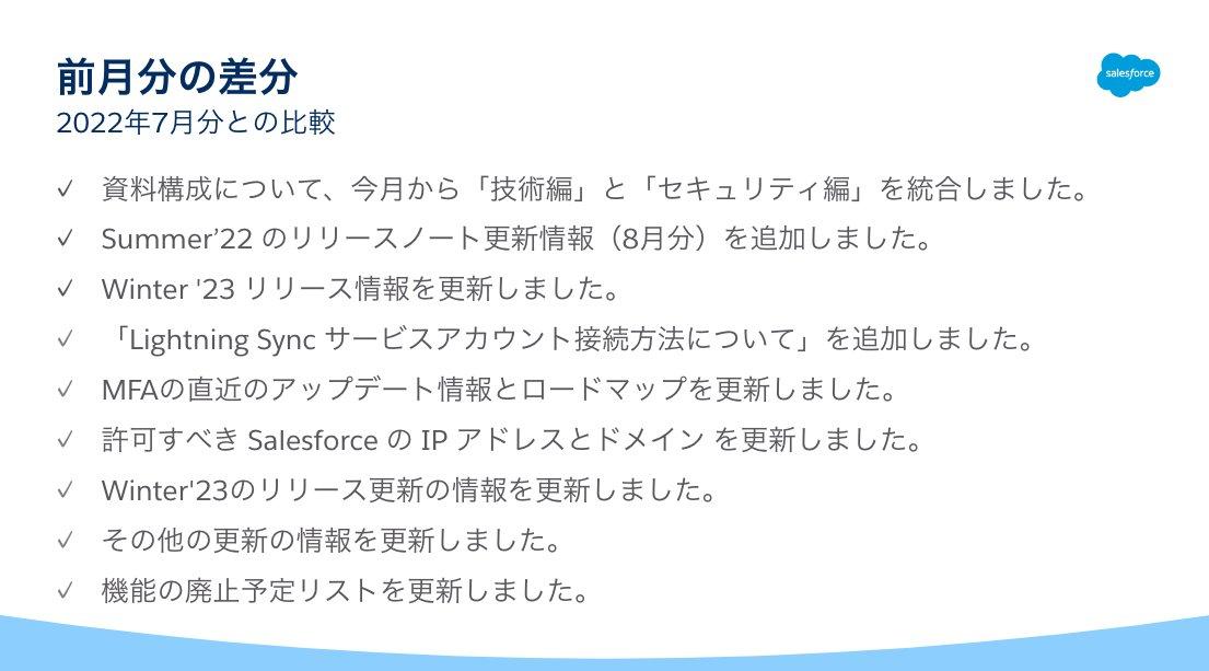 Summer'22のリリースノートやWinter'23のリリースに関する更新情報だけではなく、インフラ面での変更点やMFAに関する更新情報もございますので、最後までご覧いただければ幸いです。