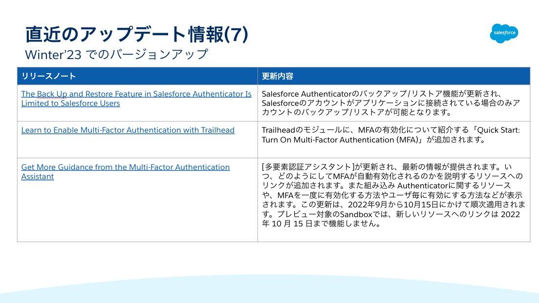 続いて、Winter'23におけるMFA関連の更新情報です。