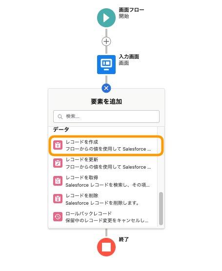 次に「入力画面」の下の「+」から、「レコードを作成」を選択します。