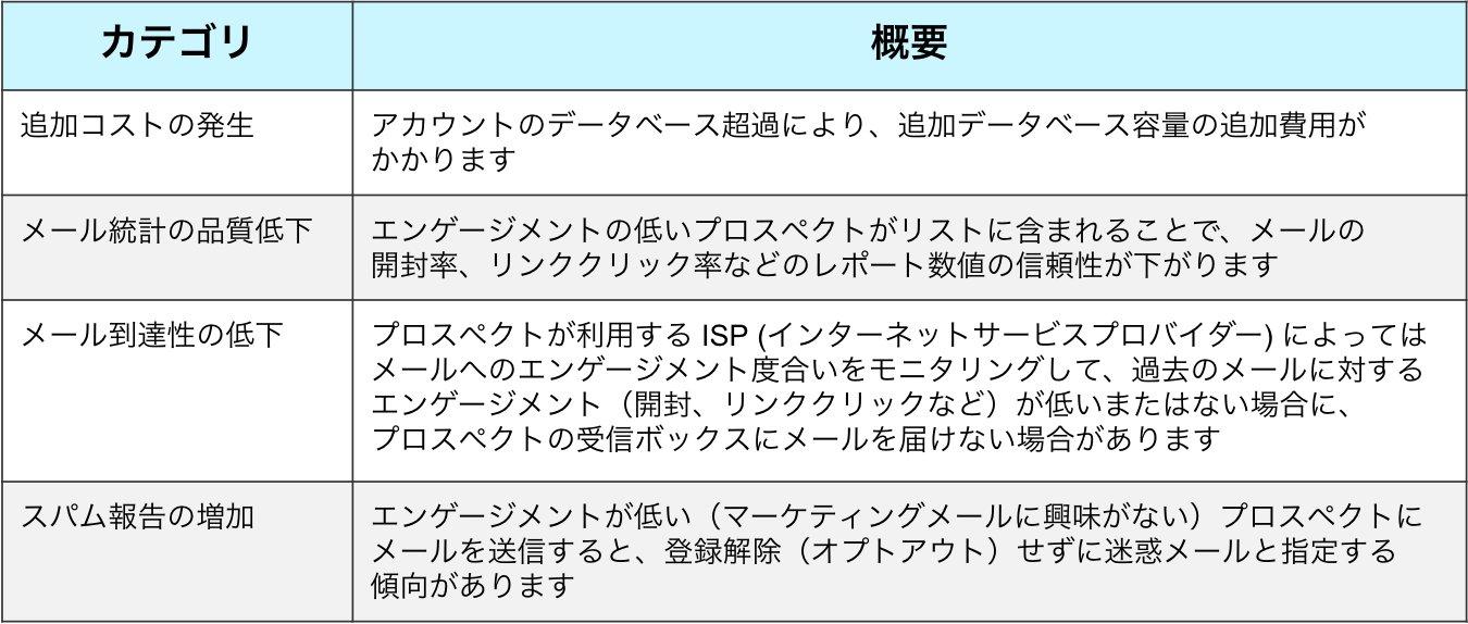 - 古くエンゲージメントが少ないプロスペクトが存在することで生じる問題について