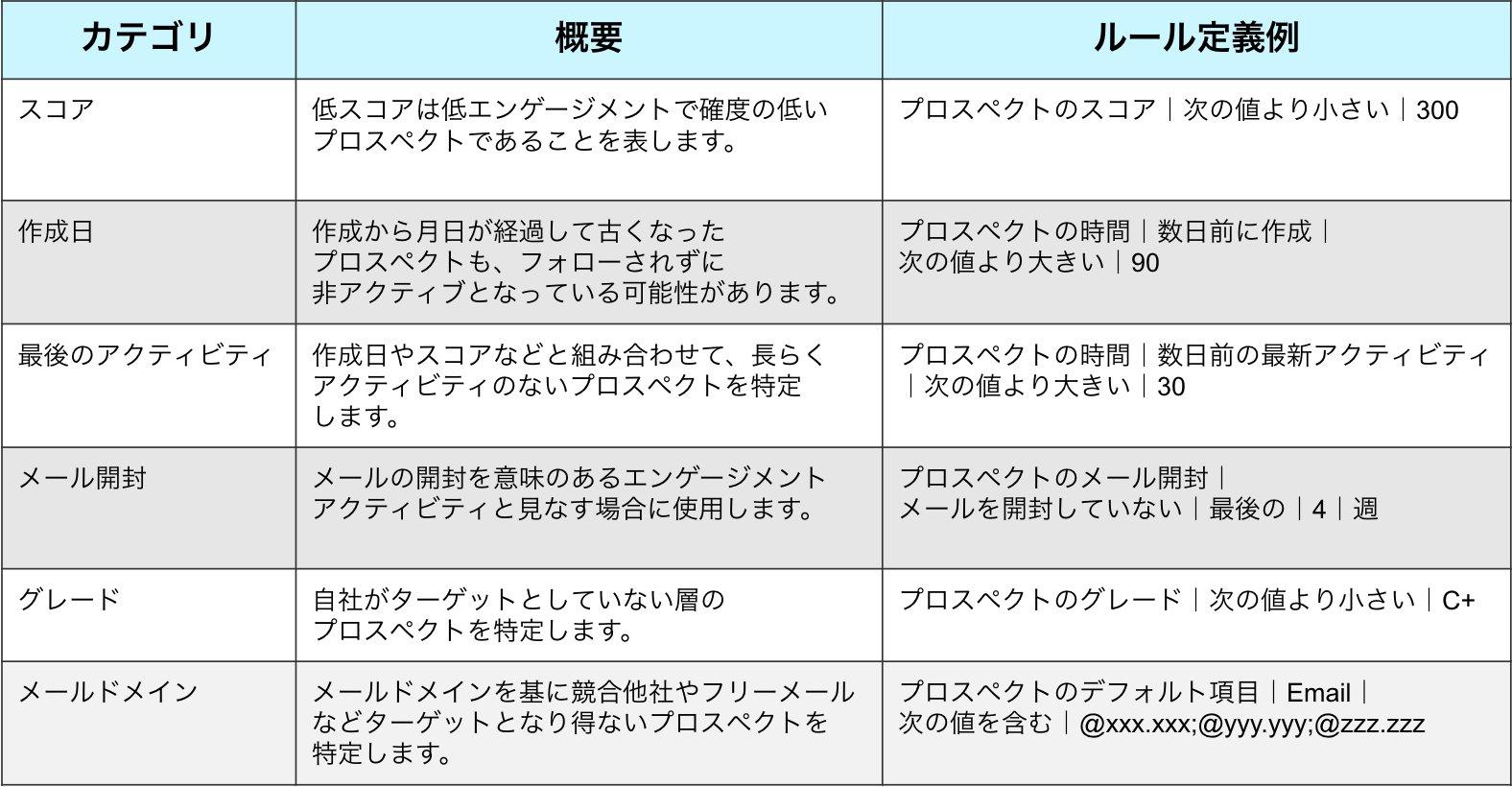 - エンゲージメントのない・低いプロスペクトの見極めと整理の方法について