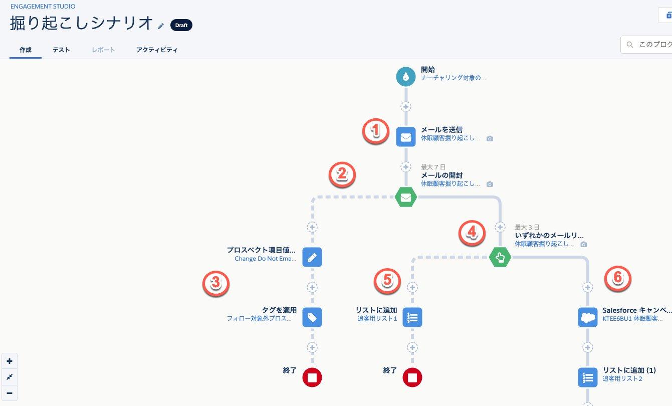 休眠・コールドリストを作成できたら、掘り起こし用のEngagement Studioで自動ナーチャリングを実施し、そこから商談化が可能なプロスペクトを掘り起こすことも可能です。