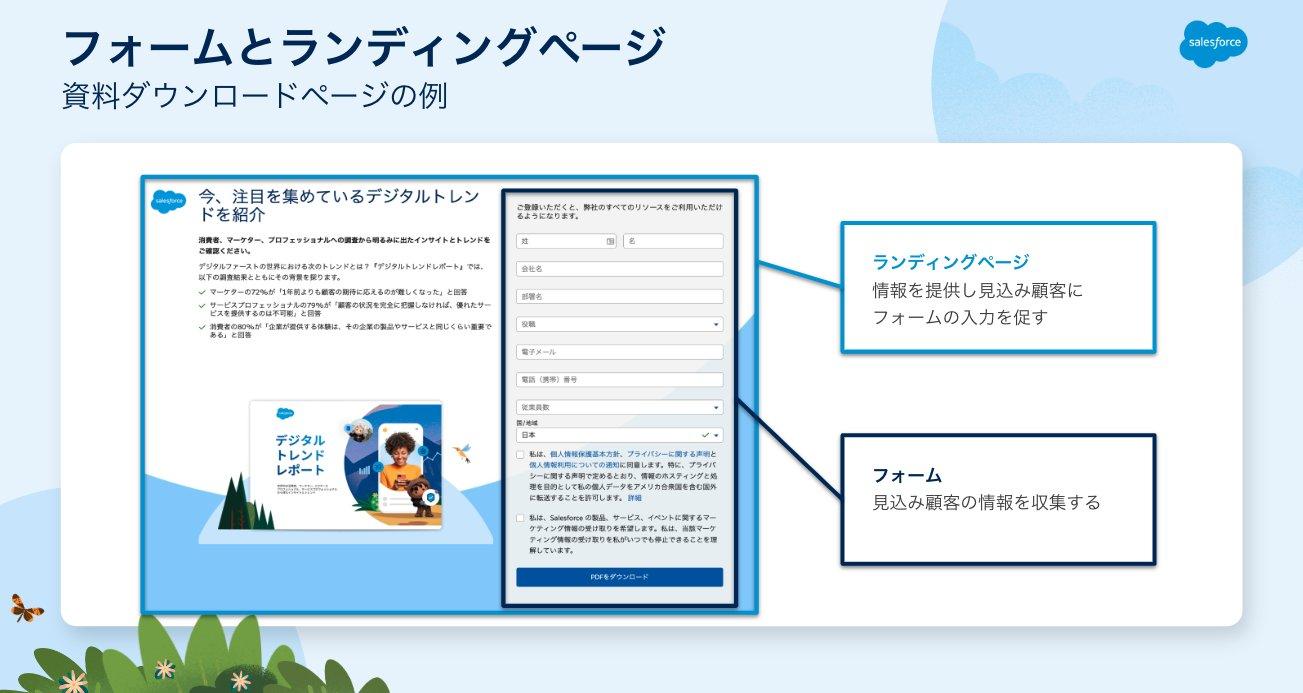 見込み客獲得のため、Account Engagementではフォーム・ランディングページ・フォームハンドラーの機能を活用します。