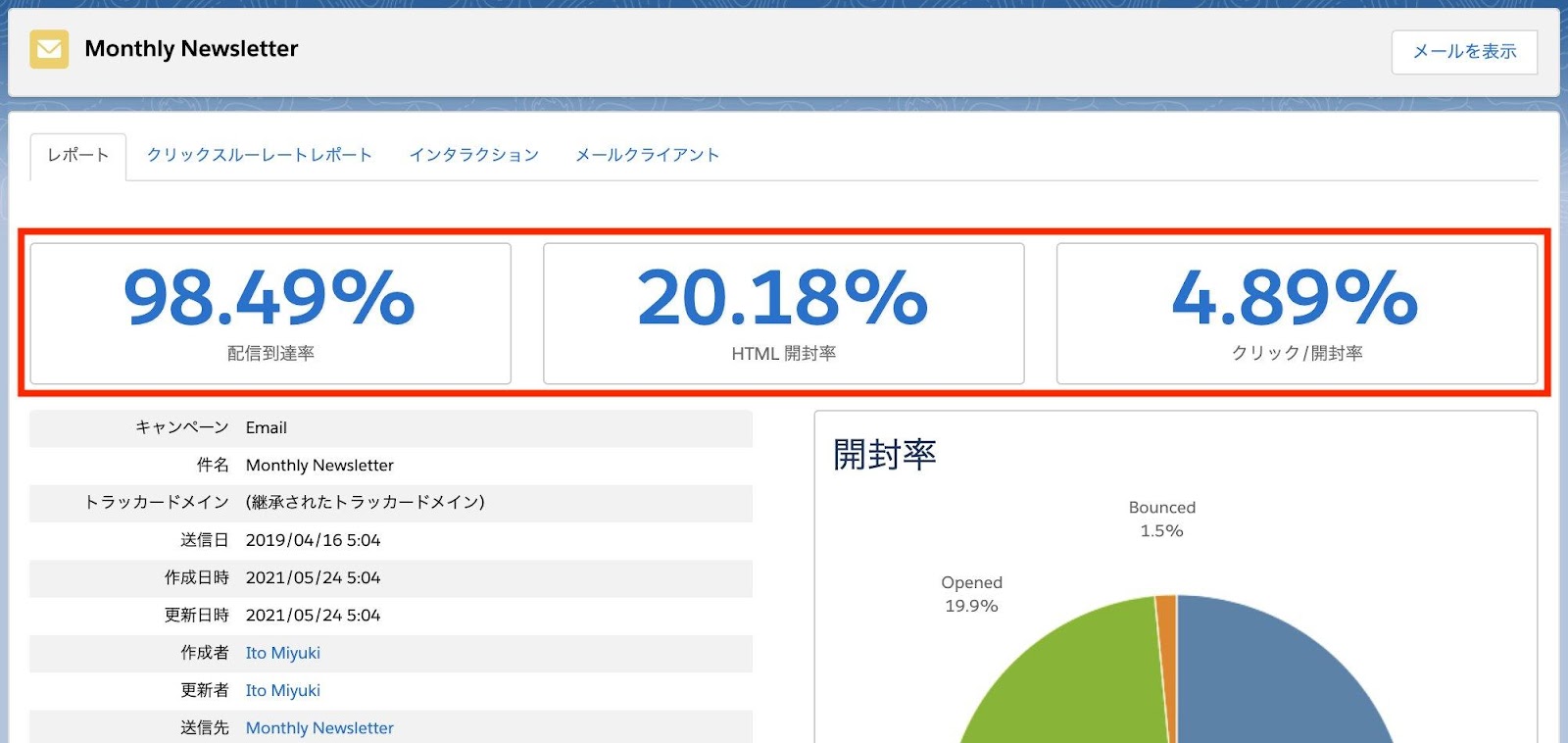 メール配信を終えて一息ついたら、結果を確認してみましょう。