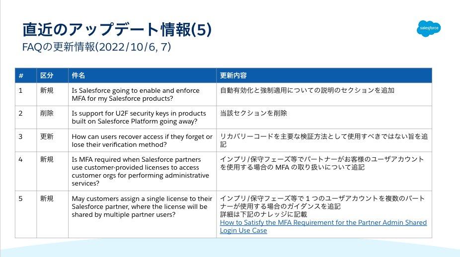 Salesforce 多要素認証に関する FAQ のナレッジが、英語版のみ10/7に更新されています。