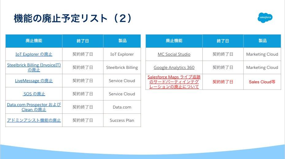 こちらは機能の契約期間によって廃止日が変わりますのでご確認ください。