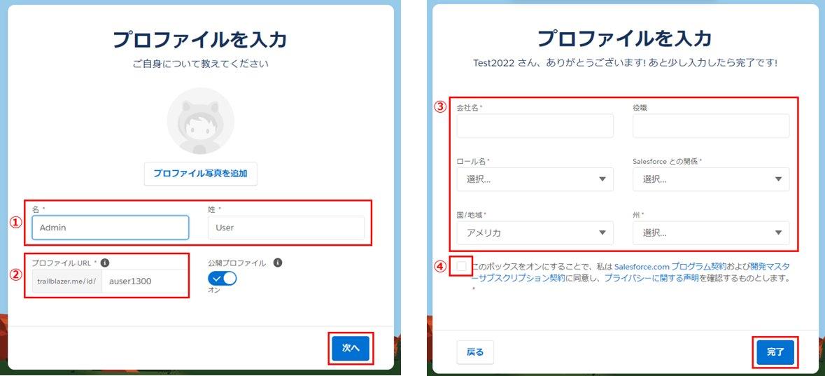 ログインされるご自身のTrailblazerアカウントのプロファイルを作成します。