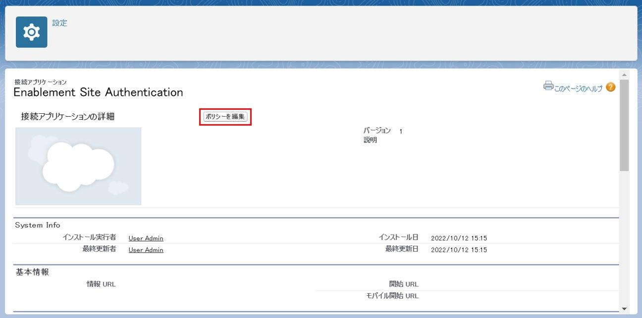 ※この情報を入力するときには十分に注意してください。間違った情報を入力してイネーブルメント向けの Salesforce Identity を有効にすると、自分のイネーブルメントサイトからロックアウトされてしまいます。もう一度アクセスできるようにするには、Salesforce カスタマーサポートにお問い合わせください。
