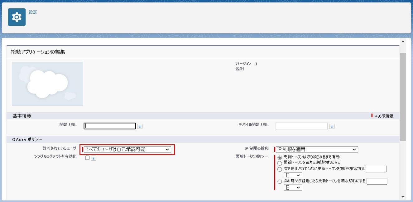 - 接続アプリケーションのOAuthアクセスポリシーの設定方法