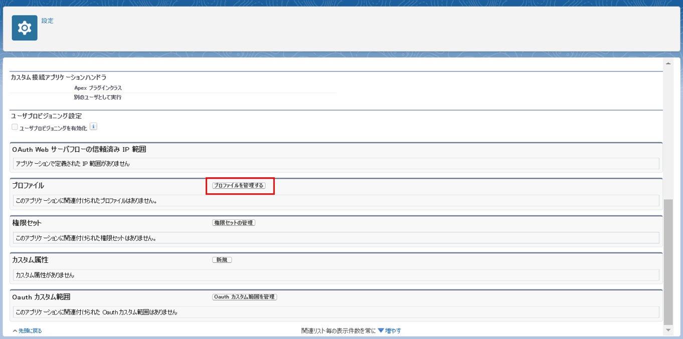 接続アプリケーションのOAuthアクセスポリシーの設定を行います。