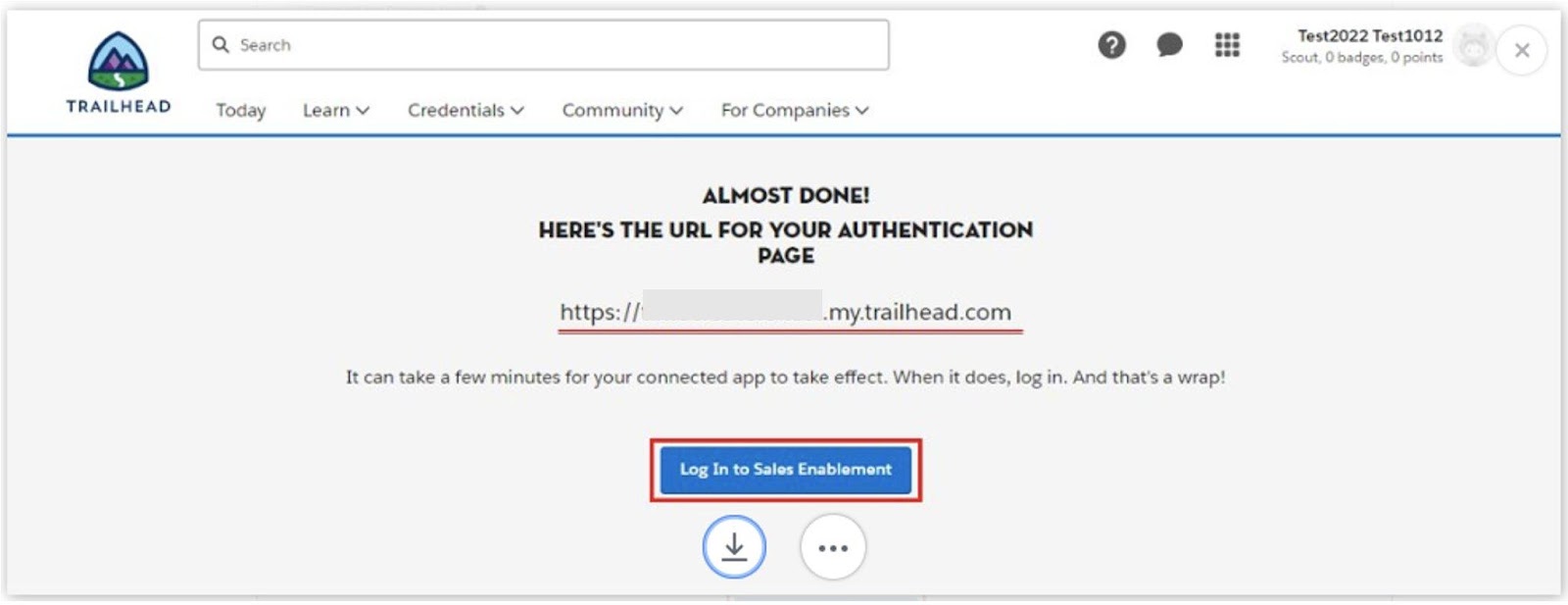 Sales EnablementのURLを入力し、末尾に/auth/mytrailhead/callback を追加します。