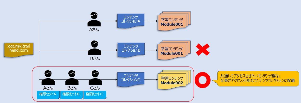 コンテンツコレクションを活用することで、コンテンツを特定のユーザには見せないという学習ニーズに対応できるようになります。(例:マネージャー向けコンテンツを1つのコンテンツコレクションとして対象者のみアクセス可能にする)