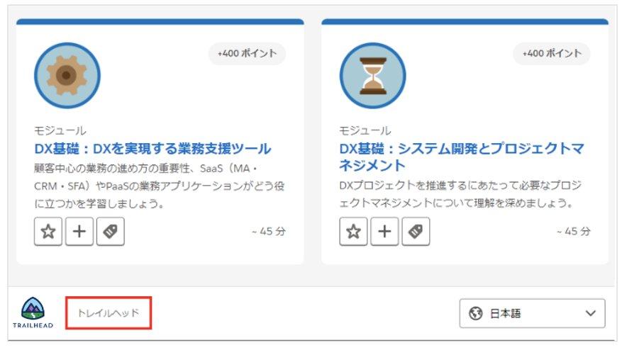 Enablementサイト右上のご自身のアバターをクリックし、「Trailmaker」にアクセスして設定します。
