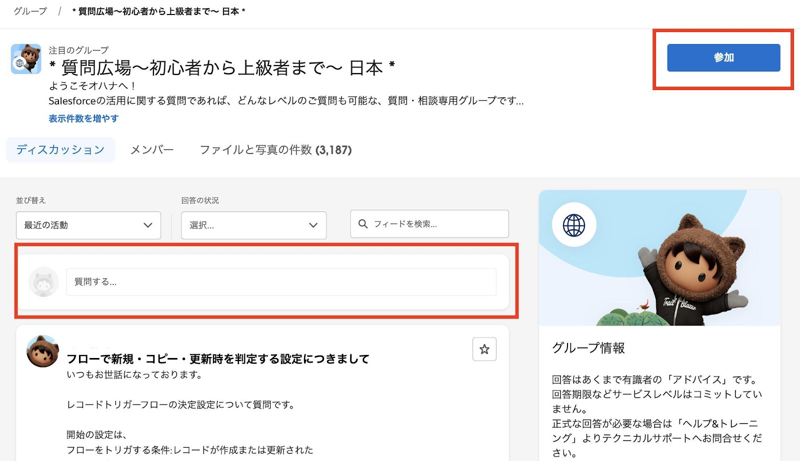 *ご利用にはTrailheadへのログインと、「質問広場〜初心者から上級者まで〜日本」グループへの参加が必要です。