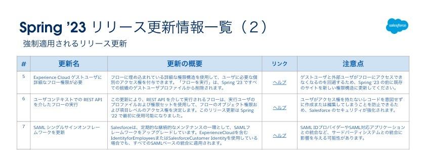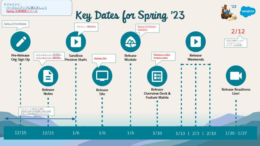 2023年 2月に予定している Spring ’23 リリースに関して更新情報を赤字で記載しています。