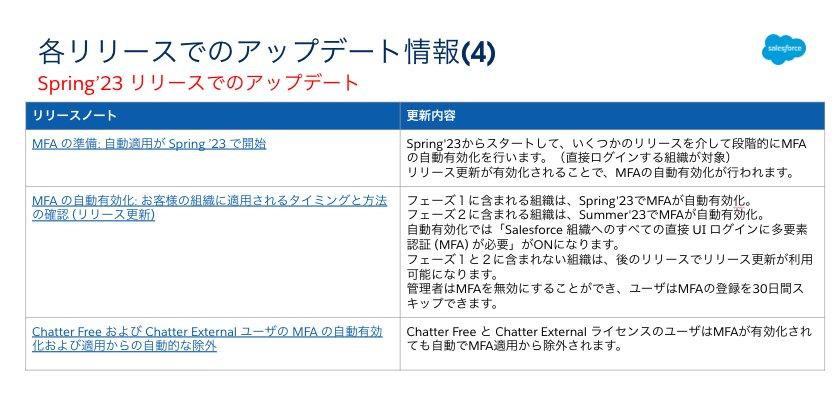 - MFA の準備: 自動適用が Spring ’23 で開始