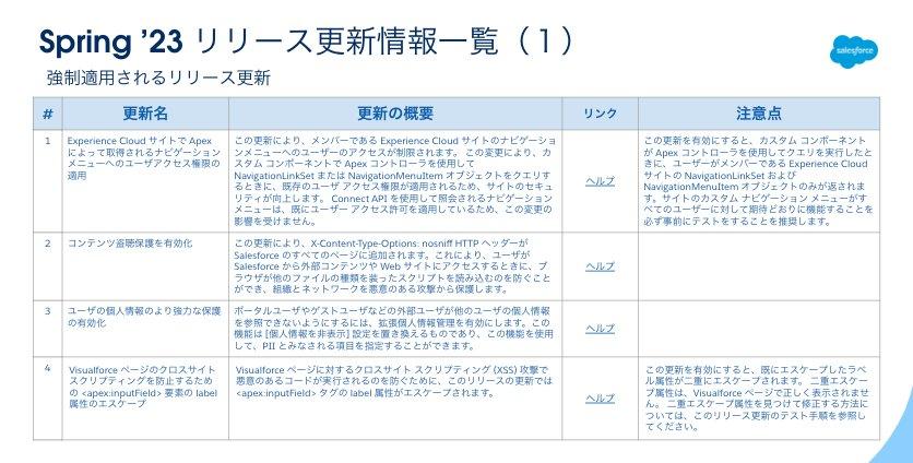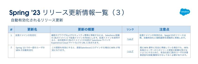 Spring'23に関する各種ドキュメントを公開しておりますが、リリースノートについては翻訳版も公開されておりますのでぜひご覧ください。