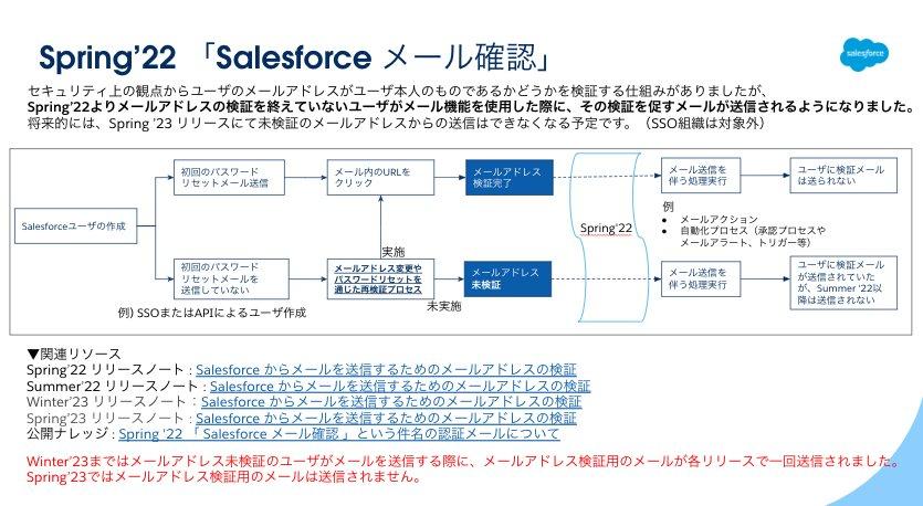 - Spring’23 リリースノート : Salesforce からメールを送信するためのメールアドレスの検証