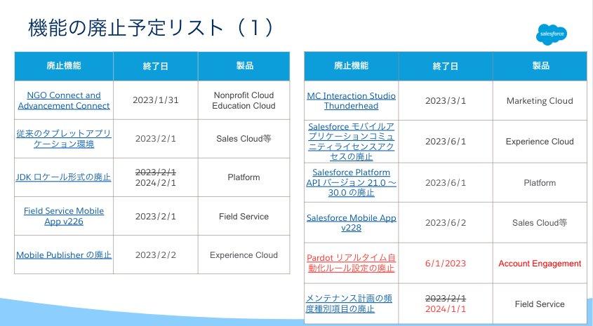 一つ目は、2023年6月、Pardot リアルタイム自動化ルール設定の廃止が予定されております。Account Engagement で当該機能をご利用中のお客様はご確認をお願いいたします。