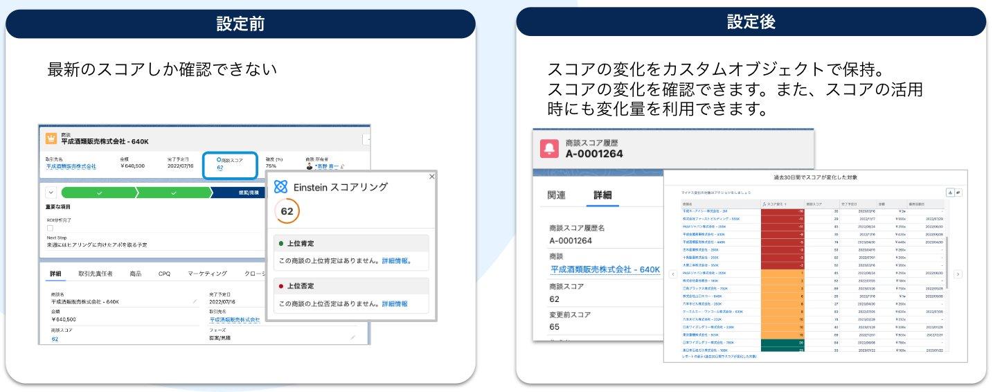 詳しい確認準備設定と確認方法を商談スコアの変更履歴を保存しようからご確認ください。