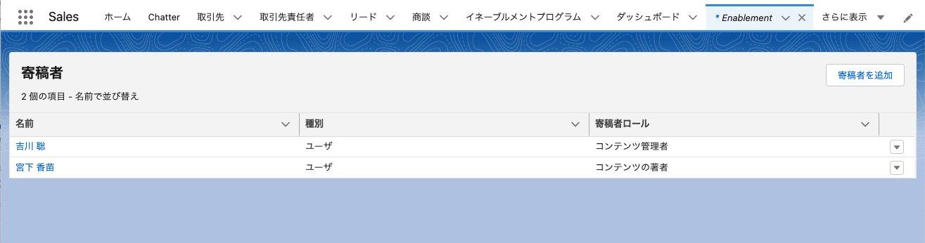 - Enablementの環境セットアップ作業は、Enablement管理者や利用ユーザに権限をアサインする作業になります。