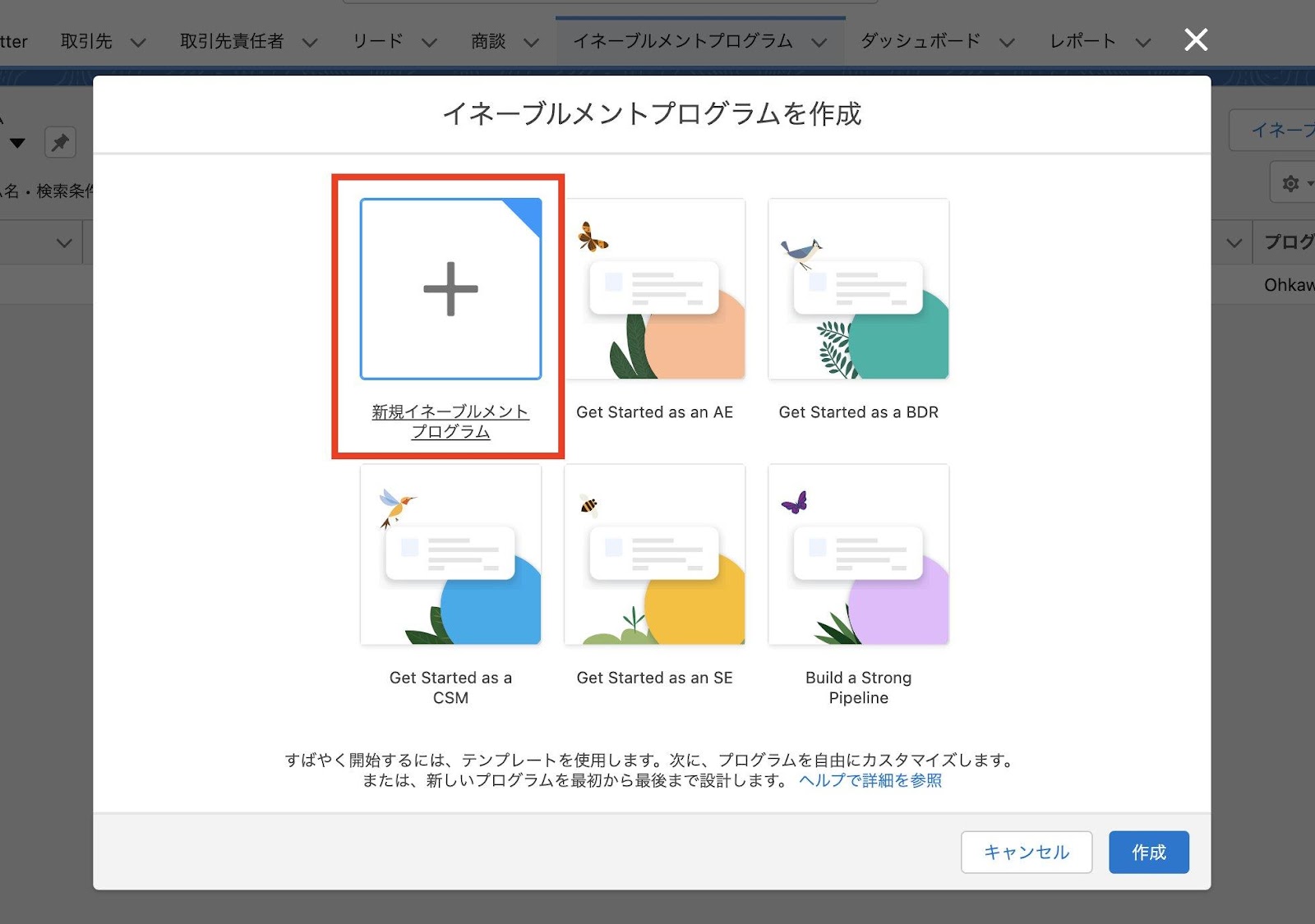 ここではテンプレートは使わずに1から作成してみます。「新規イネーブルメントプログラム」を選択します。