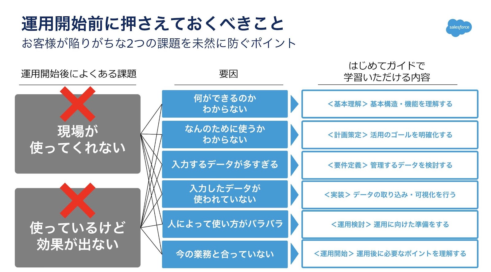 これらの課題を未然に防ぎ、Sales Cloud導入を成功に導くため、