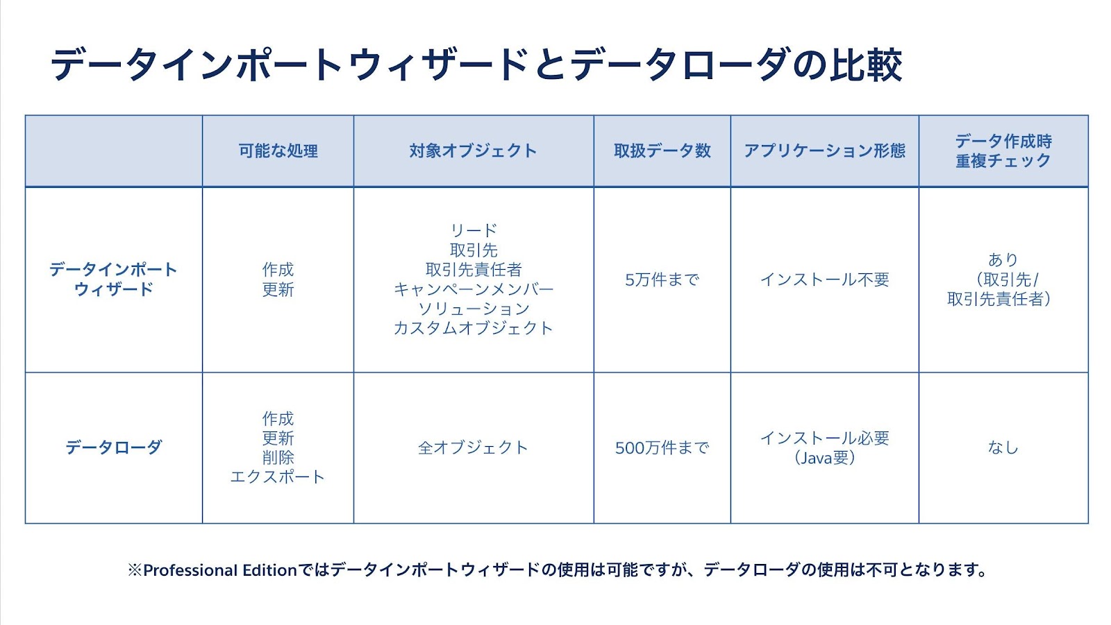データを一括登録できるツールには、データインポートウィザードとデータローダーの2種類があります。
