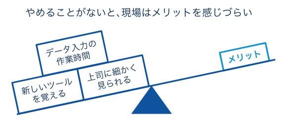 利用ユーザーにとって、Sales Cloud導入が決して作業負荷を上げるだけではないことを強調するために、Sales Cloud導入により”やめられること”について説明します。これにより利用ユーザーの抵抗感を下げます。