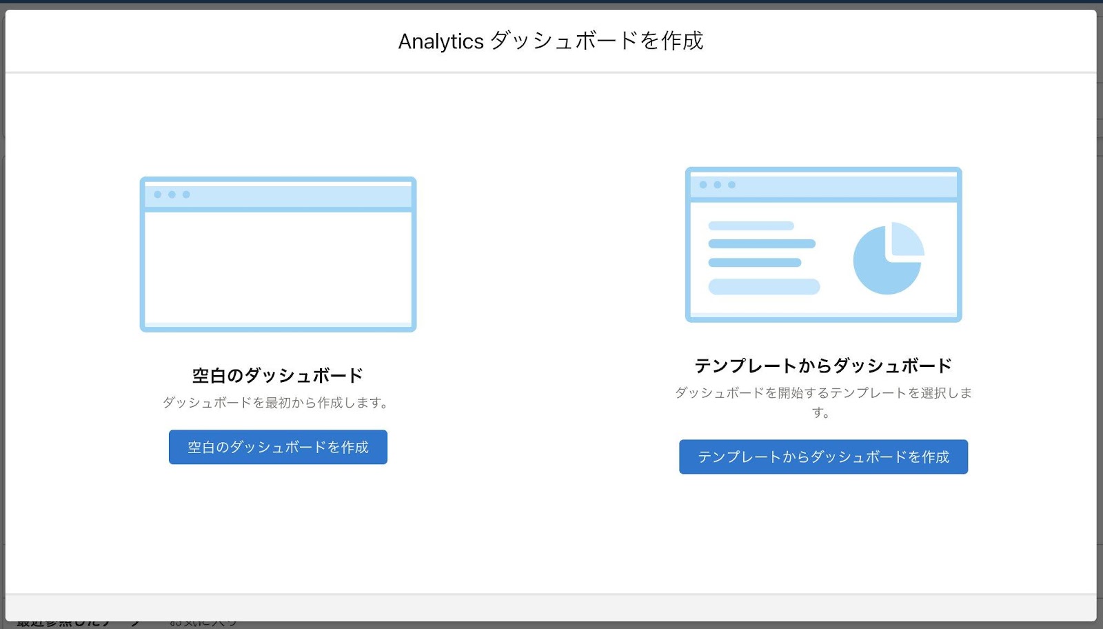- Analyticsダッシュボードを作成画面で [ 空白のダッシュボード ] を選択します