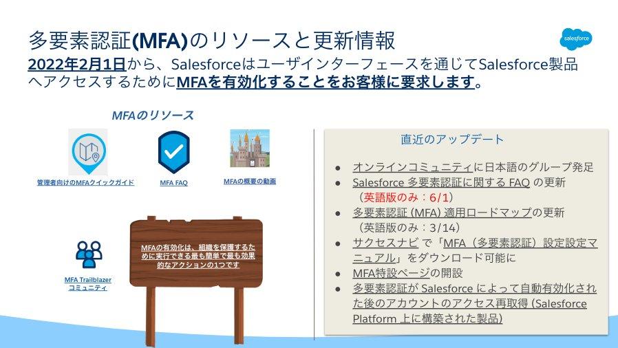 - Spring '23 とSummer '23 のリリースに引き続き、Winter '24 のリリースでもMFAが自動有効化される組織がございます。自動有効化対象のお客様には事前にSalesforceからお知らせのメールが送信されますので、管理者様は弊社から送信されるメールのご確認をお願い致します。
